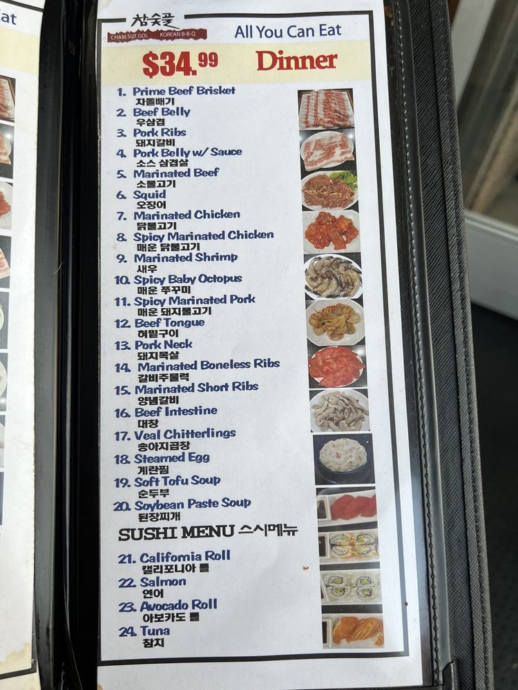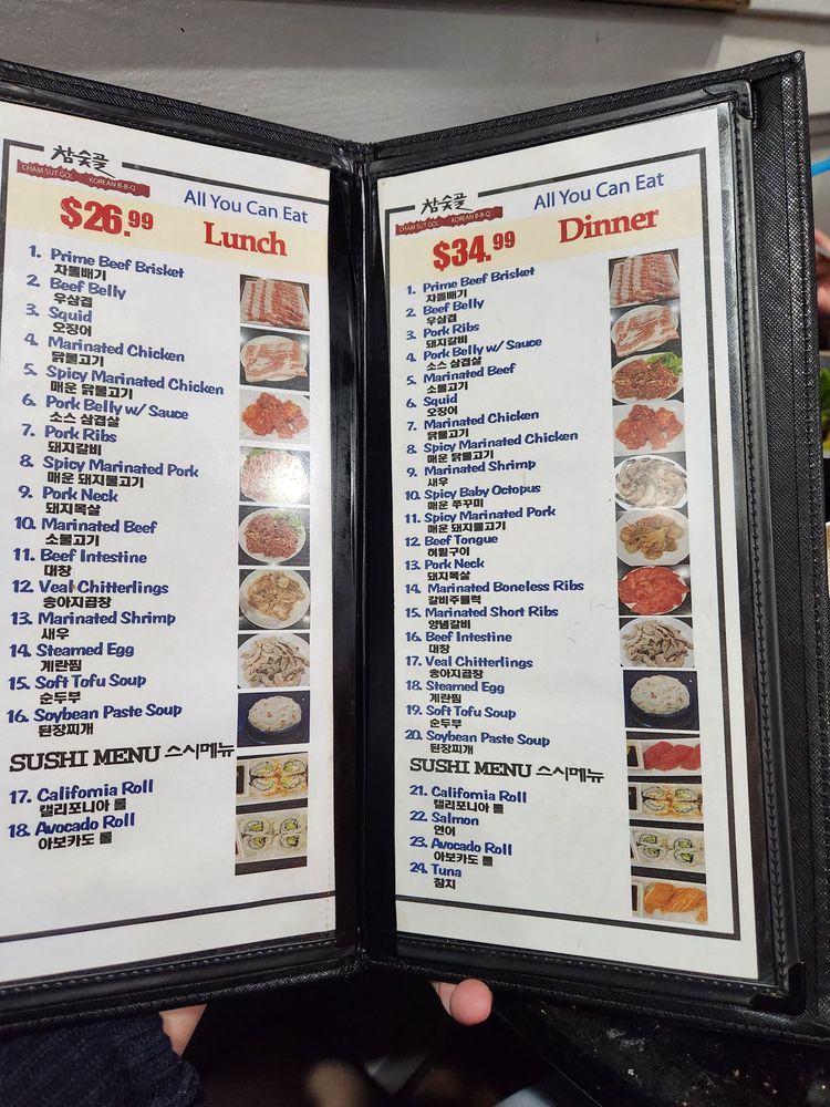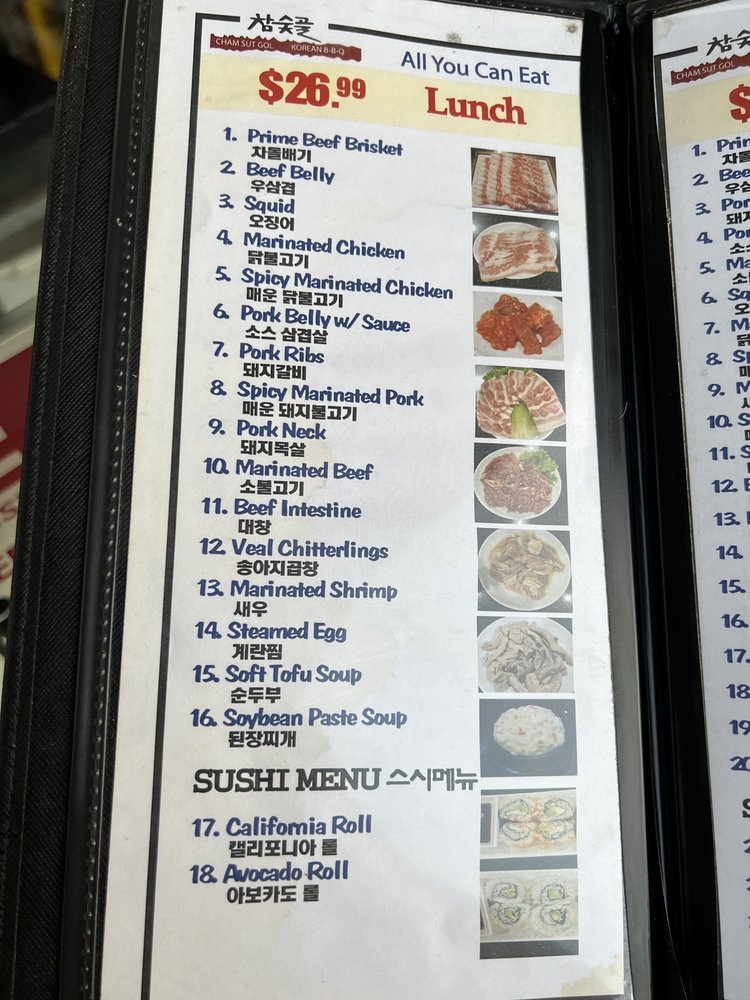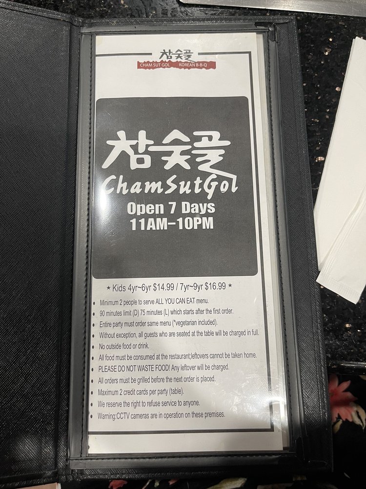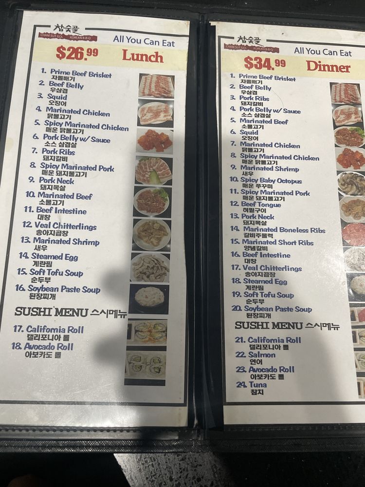 Located in Rowland Heights, CA, Cham Sut Gol BBQ offers an array of savory Korean BBQ dishes. The menu features kobe style beef, fresh tenderloin, marinated beef sirloin, and more. Customers rave about the cozy ambiance, attentive staff, and the delicious side dishes like kimchi and banchan. With options for soups, rice dishes, and all-you-can-eat BBQ, this spot caters to both BBQ enthusiasts and newcomers. The beef tongue, shrimp, and spicy chili sauce are notable highlights, along with the complimentary ice cream at the end of the meal. The service is top-notch, with friendly staff always ready to assist. If you're looking for a satisfying and enjoyable Korean BBQ experience, Cham Sut Gol BBQ should be at the top of your list.